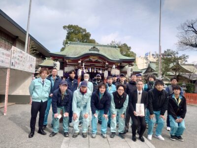 社員20名と4社の協力会社様に参加いただき、福田神社宮司様に祈願していただきました。