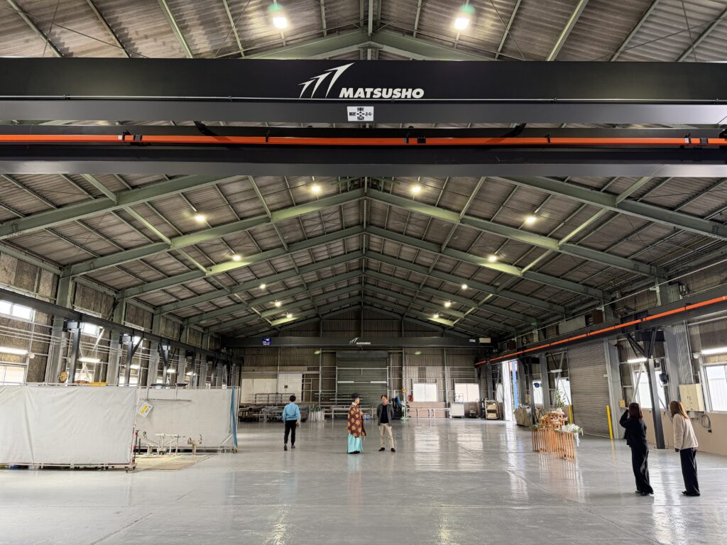 配管製作の新たな拠点として整備を進めている、倉敷市松江3丁目のプレファブセンターで2.8トン天井クレーン2台の設置が完了しました。