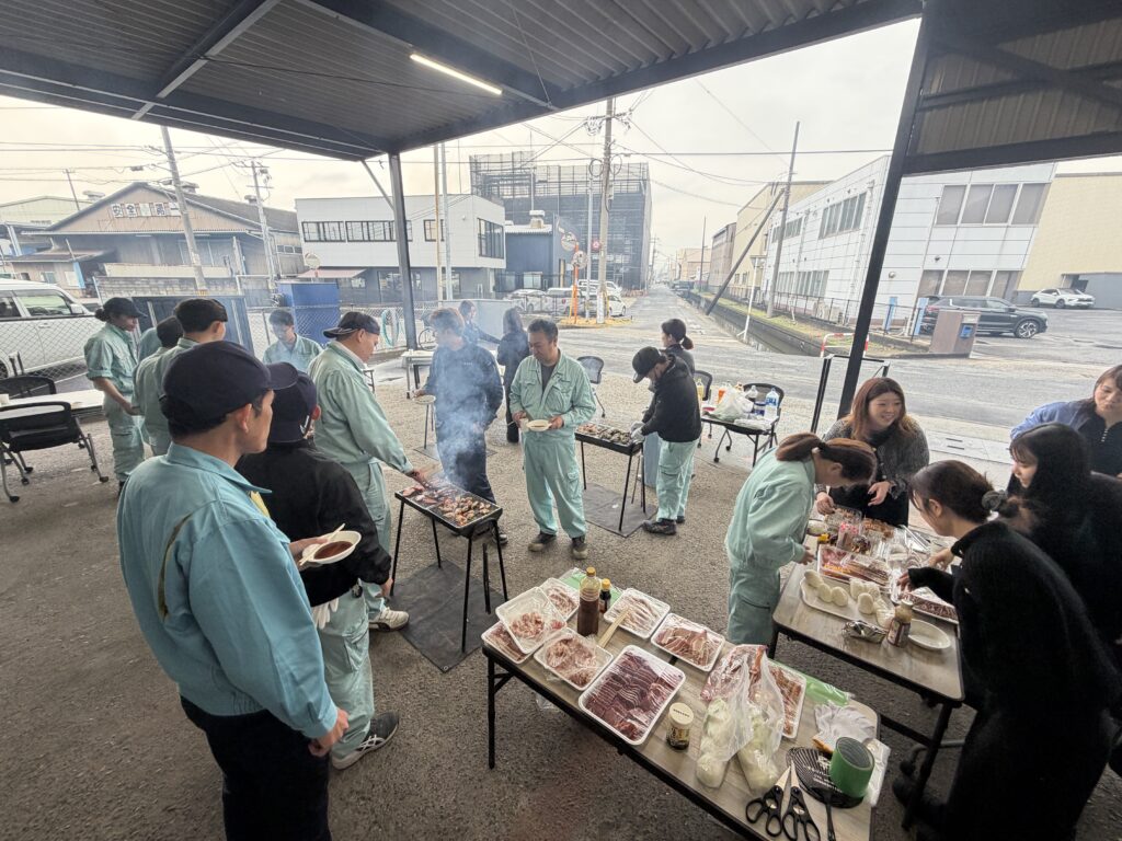 そしてこれまで頑張って学んできた新入社員、講師を務めてくれた社員の皆さんを労い、社員同士の交流を深めるために社内でBBQを開催いたしました。